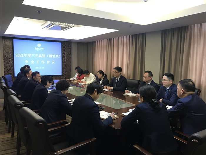牢固树立三元宾馆(酒管系)教职员工安全责任意识,全面推进安全稳定工作有序发展。210日上午,三元宾馆(酒管系)组织召开2021年度安全工作会议,会议由俞险峰总经理主持,三元宾馆(酒管系)全体中层干部参加了会议。