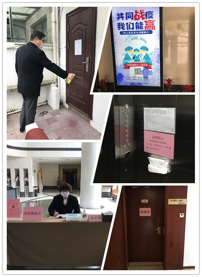 为充分保障宾客和员工的安全,疫情防控期间,宾馆在门卫设立员工体温检测点,在大堂设立宾客体温检测点,对宾客严格执行入住“三步骤”即测体温、查看苏城码、查验个人轨迹。并消毒洗手,佩戴口罩。设置口罩处理专用垃圾桶。宾馆设置“留观室”,宾馆内消毒工作全面升级,针对电梯、公共区域、洗手间、客房、餐饮、员工宿舍、行政办公区等场所实施定时专人消毒、保持自然通风。为避免人员密集,严格控制上班人数,各部门根据工作需要按需排班。上岗员工实行“三错峰”措施,既错峰上班、错峰取餐就餐、错峰下班。宾馆已开通客房网络预订平台,提供房内送餐,筹备开办“苏惠美食”外卖业务。宾馆通过多项举措,扎实做好疫情防控工作,在确保疫情防控万无一失的前提下,有序开展返岗复工复业,以积极姿态开拓市场,恢复经营,以守业等待市场复苏。