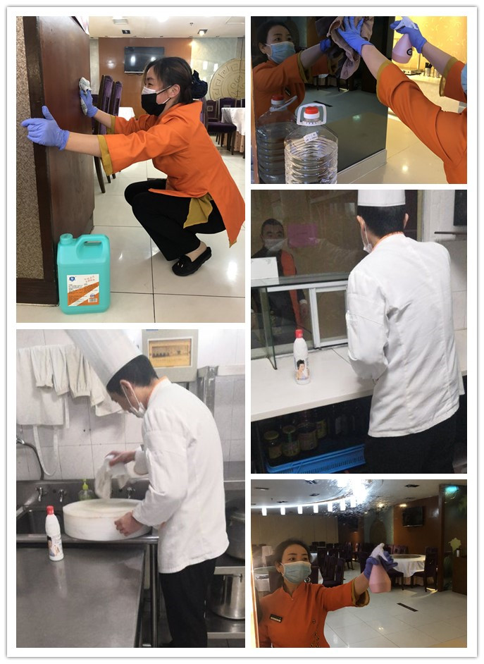 复工前期,按疫情防控要求,宾馆提前做好充分的准备工作。成立宾馆疫情防控应急工作组,制定疫情应急防控预案,加强组织领导,明确分工,压实责任,宾馆各部门各司其职,各负其责,全面落实疫情防控各项举措,把疫情防控工作抓细抓实,全力打好打赢疫情防控阻击战。总经办负责与行业主管部门以及所属街道保持密切沟通,了解防疫工作最新部署和要求。按苏州市复工要求分类细化排查防控物资准备情况,落实复工后员工卫生消毒防护、员工工作餐分餐制、回苏员工自我隔离14天等相关工作,精准排查返岗复工人员情况,扎实做好上岗人员的摸排登记,维护复工安全。采购部提前做好电子测温计、口罩、75%酒精、消毒液、消毒面片、消毒肥皂、橡胶手套等防控物资采购工作。