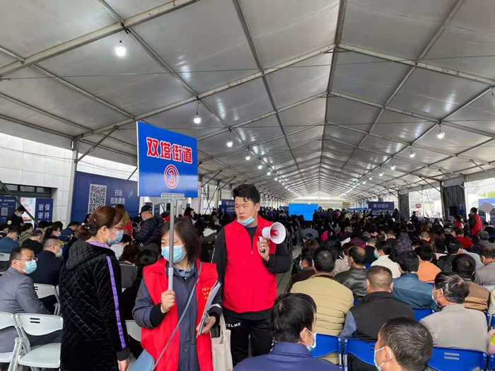 在接种现场,等待接种的员工们佩戴口罩有序排队,主动接受现场医护人员的检测和健康问询,在填写相关表格登记后有序进行疫苗注射,并按照要求前往留观区留观30分钟,整个接种工作井然有序。