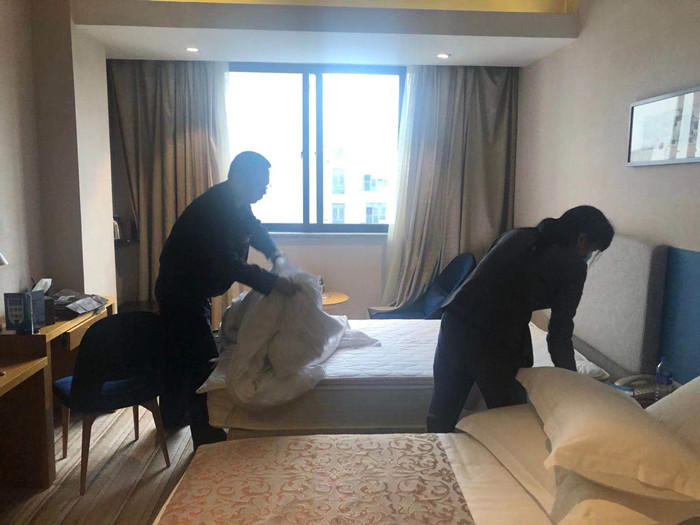 党员就是旗帜,大事难事看担当,今年以来,因疫情影响,宾馆经营工作忙闲不均,宾馆面临用工难问题,在这样的关键时刻,酒店管理系(三元宾馆)第一党支部基层党建“书记项目”彰显榜样力量,全体党员干部坚决扛起责任,自觉践行初心使命,当先锋、作表率,挺身而出、冲锋在前,以实际行动为党旗增辉添彩,员干部组织成立了“突击队”,经营繁忙时充实一线,帮助部门解决实际问题和困难,在客情紧张的时间节点,协助客房清扫房间、餐饮跑菜服务等,截止到11月底,党员、干部“突击队”共计出动103人次,清扫房间165间,餐饮跑菜6次。